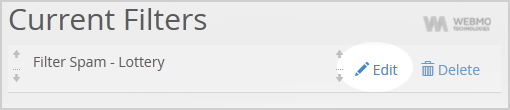 4. Under "Current Filters" You can see all of your existing filters, Click on "Edit" next to the appropriate one.